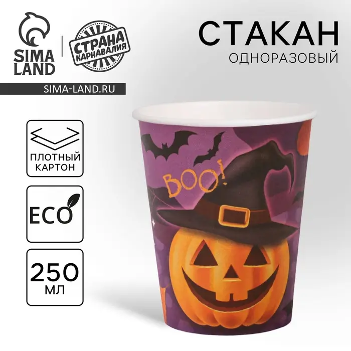 Стакан одноразовый бумажный «Весёлая тыква», 250 мл , на Хэллоуин