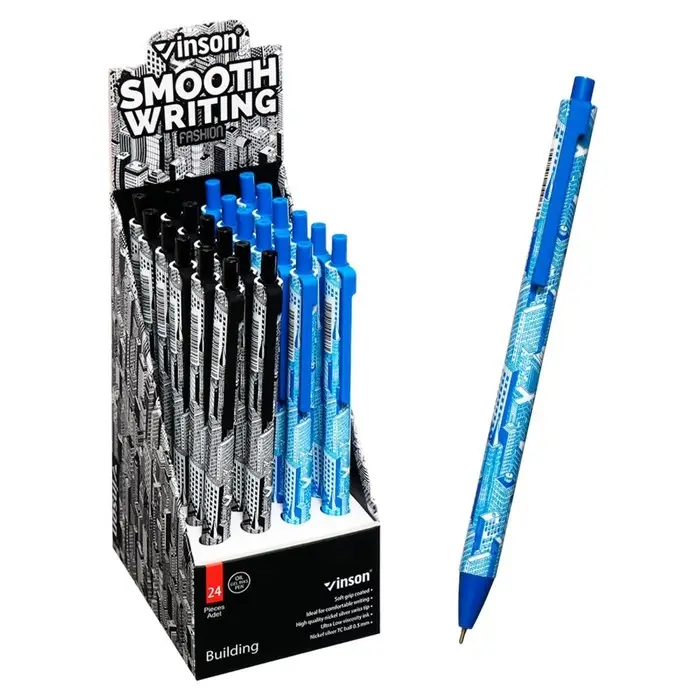 Ручка шариковая автоматическая 0.5 мм, Vinson, синяя масляная, софттач, штрихкод на шт., МИКС