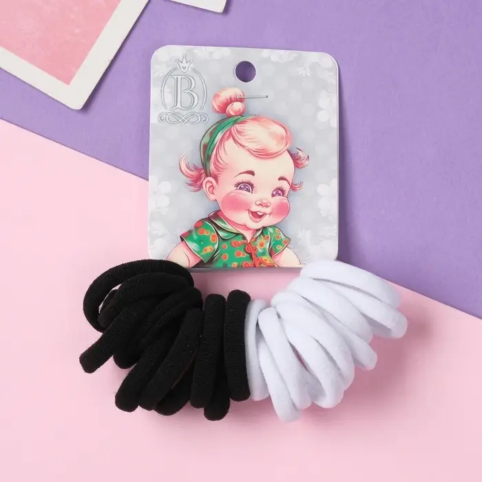 Резинка для волос "Крошка" (набор 20 шт) улыбка, 2,5 см, чёрный белый