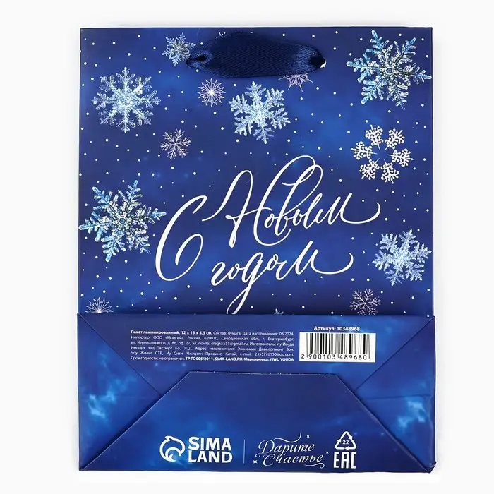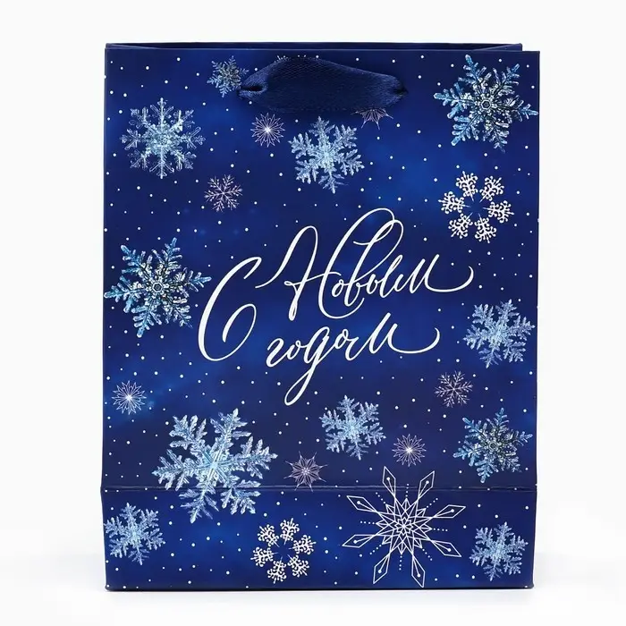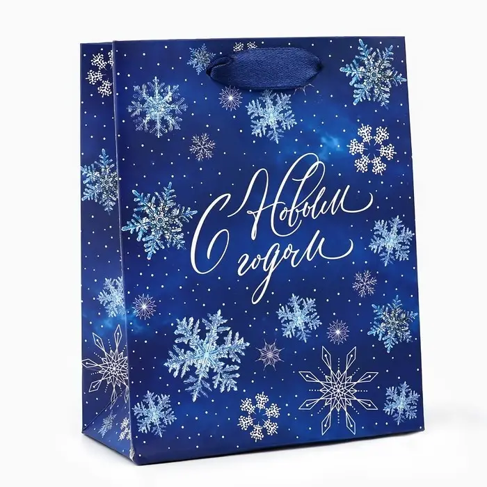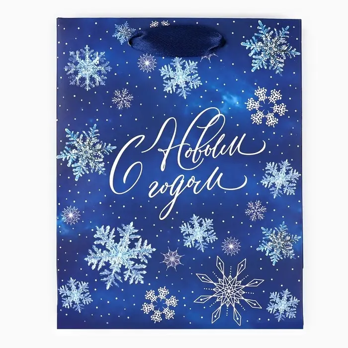 Пакет подарочный новогодний ламинированный «С Новым годом», снежинки, S 12 х 15 х 5.5 см
