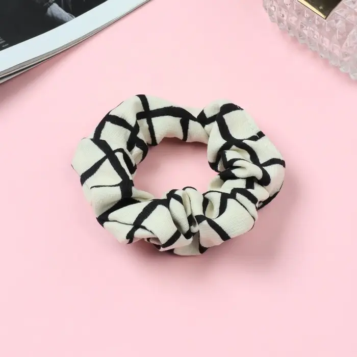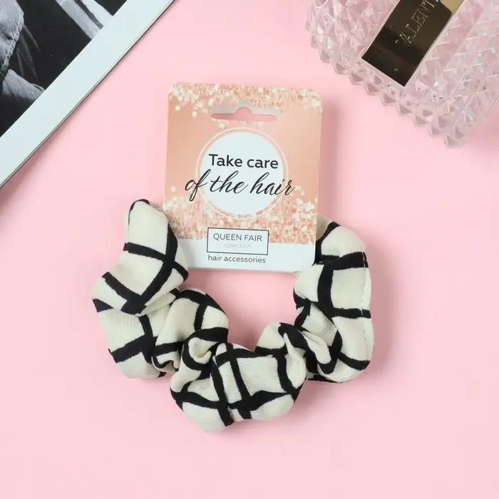 Резинка для волос "Орбита" крупная клетка, 9 см, молочно-чёрный