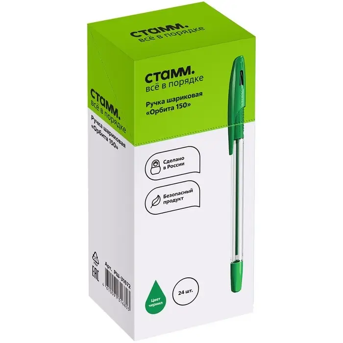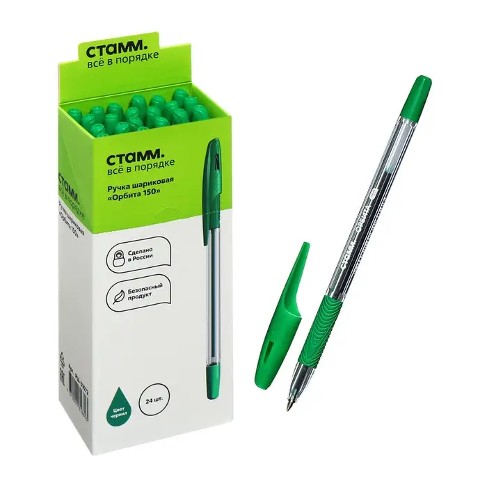 Шариковая ручка СТАММ «Орбита 150» изготовлена из качественных материалов, сочетает в себе функциональность и современный дизайн. Благодаря классической шестигранной форме корпуса ручка комфортно лежит в руке. Эргономичный резиновый грип с рифлением препятствует скольжению пальцев, что делает её использование максимально комфортным. Ручка оснащена вентилируемым колпачком, который обеспечивает дополнительную безопасность при использовании детьми. Прозрачный корпус позволяет контролировать расход чернил. Диаметр пишущего узла составляет 0,7 мм, толщина линии письма — 0,5 мм. Длина стержня — 142 мм. Износостойкий наконечник и чернила на масляной основе обеспечивают мягкое, ровное и комфортное письмо. Ручки поставляются в картонной коробке по 24 штуки.