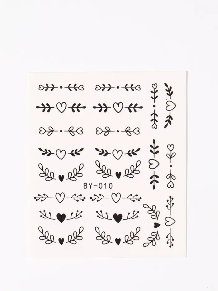Слайдеры для ногтей «Сердечки и веточки», чёрные