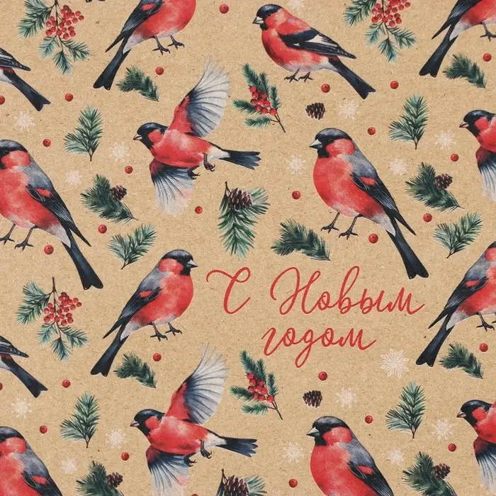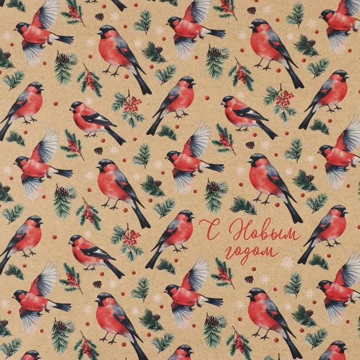 Бумага упаковочная крафтовая «Снегири», 50 х 70 см