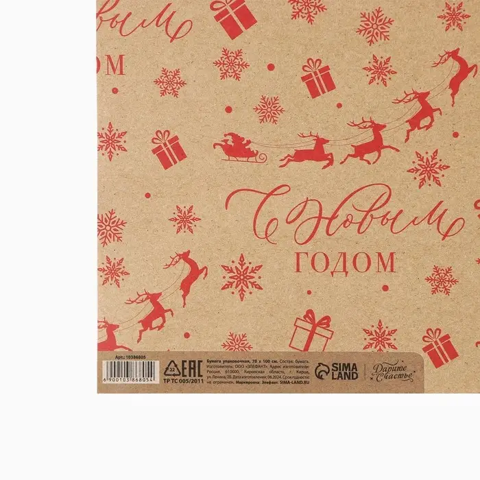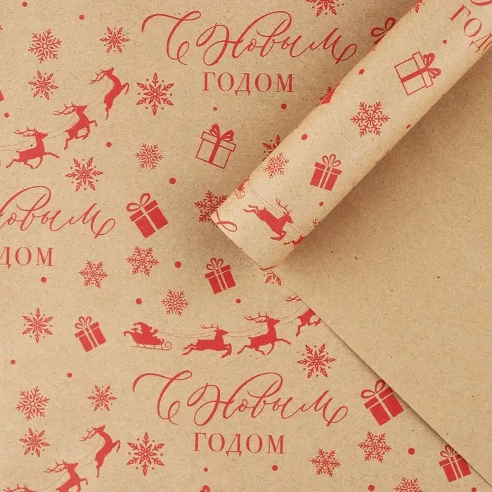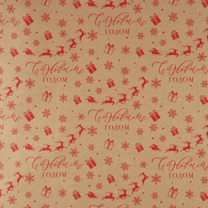 Бумага упаковочная крафтовая «С Новым годом!», 50×70 см