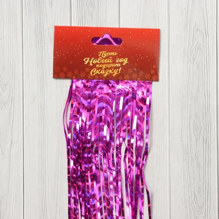 - Тип — новогодний дождик, подходит для ёлок, стен, окон или рамок как фоновый или яркий самостоятельный элемент.