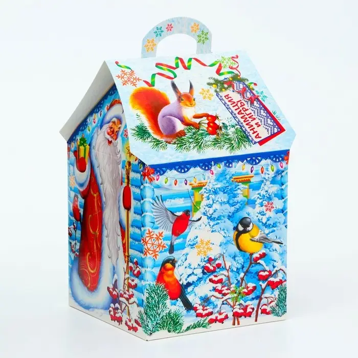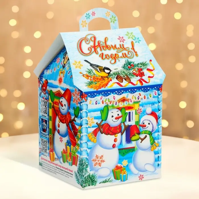Коробка выполнена из качественных материалов, которые обеспечивают сохранность содержимого. Она имеет яркий и красочный дизайн, который отражает атмосферу Нового года.