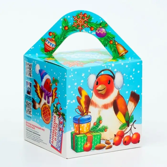 Коробка выполнена из качественных материалов, которые обеспечивают сохранность содержимого. Она имеет яркий и красочный дизайн, который отражает атмосферу Нового года.