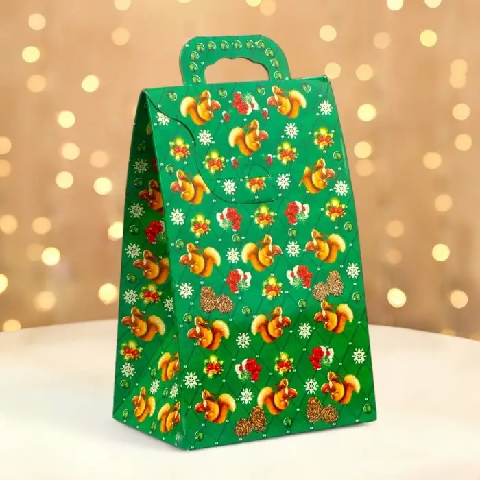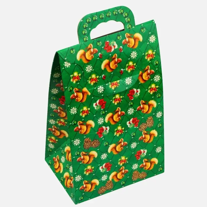 Подарочная коробка новогодняя Сумочка мини «Потерн праздничный грильяж» 140×100×223 см
