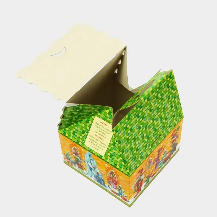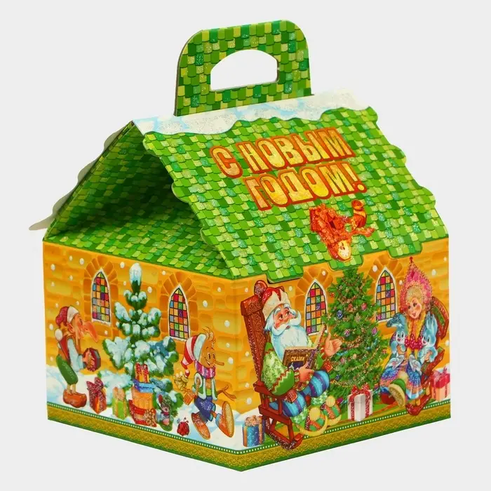 Коробка выполнена из качественных материалов, которые обеспечивают сохранность содержимого. Она имеет яркий и красочный дизайн, который отражает атмосферу Нового года.