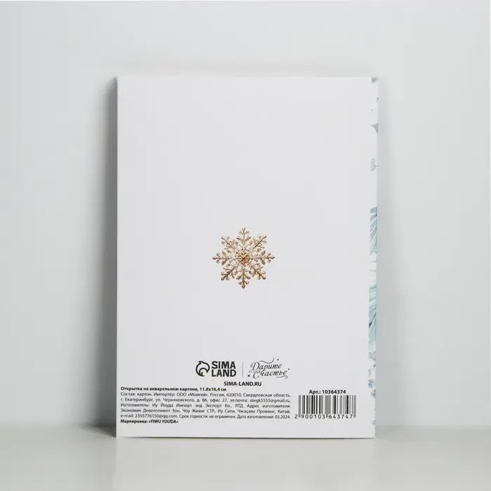 Открытка с новым годом на акварельном картоне «Сказочного Нового года!», тиснение, 11.8 х 16.4 см