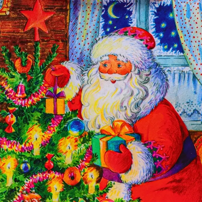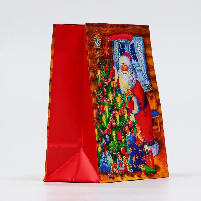 Пакет подарочный "Дед мороз у ёлки", 11,5 х 14,5 х 6,5 см.