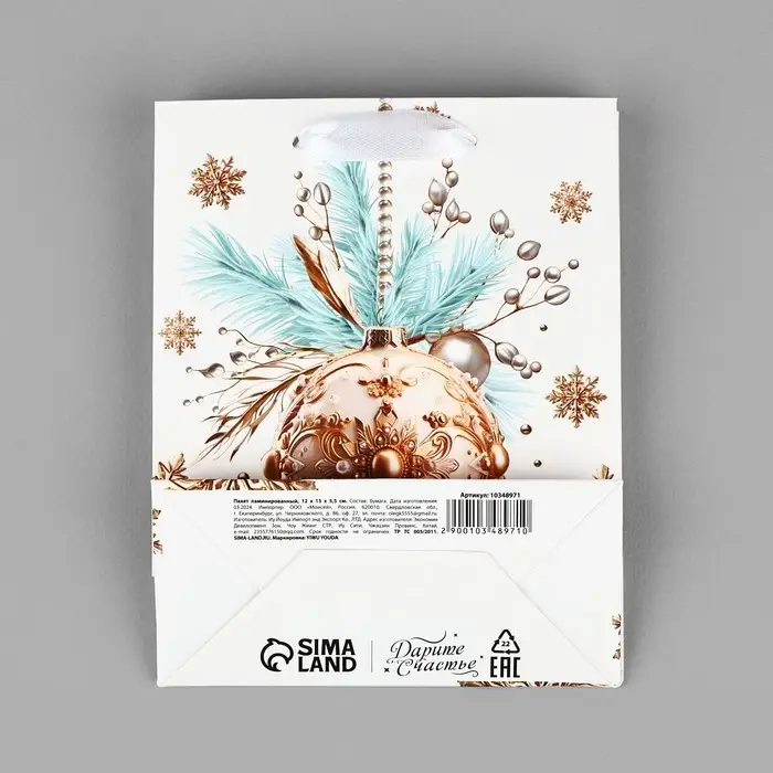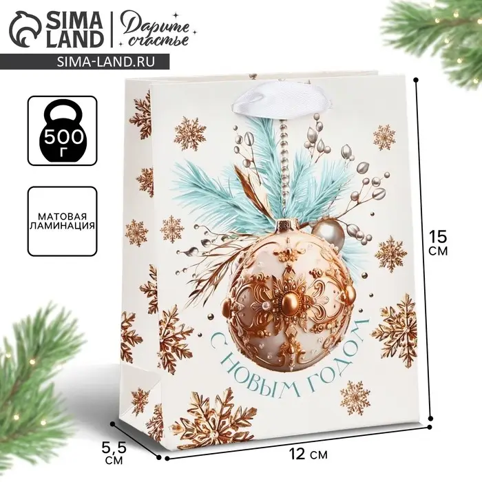 Пакет подарочный новогодний ламинированный «С Новым годом», S 12 х 15 х 5.5 см