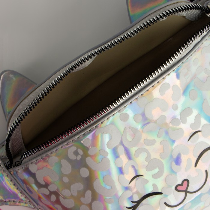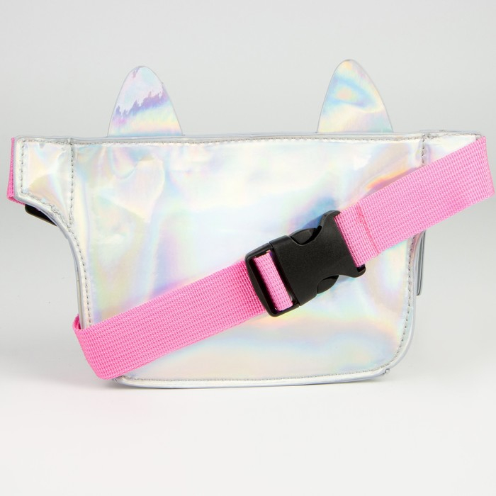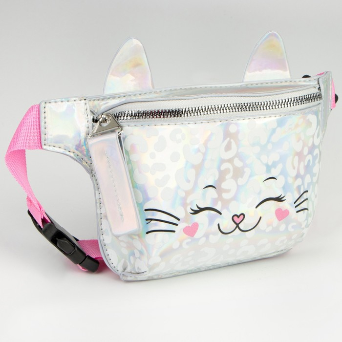 Сумка детская для девочки поясная "Кошечка", на молнии, цвет серебристый