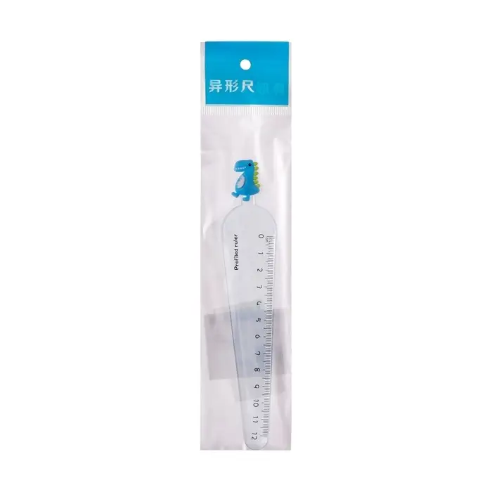 Линейка пластиковая 12 см "Динозаврик", синяя