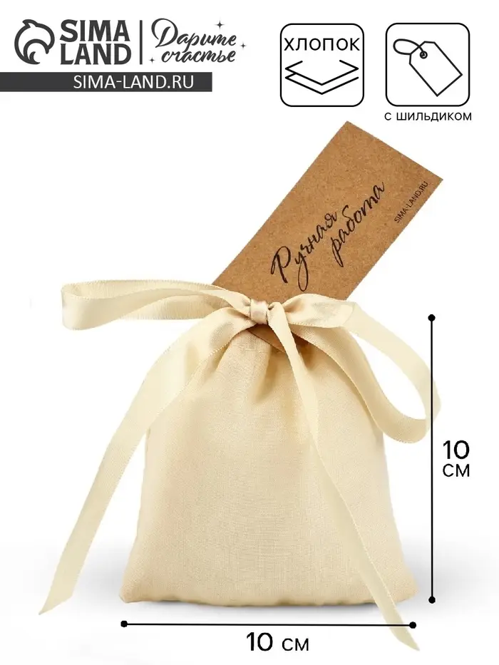 Мешочек подарочный из хлопка «Ручная работа», 10 х 12 см +/- 1.5 см