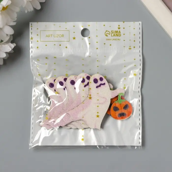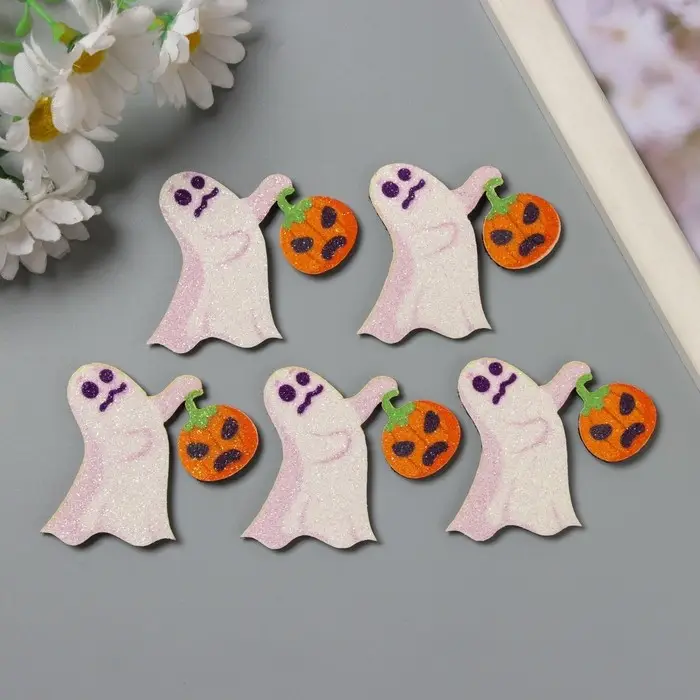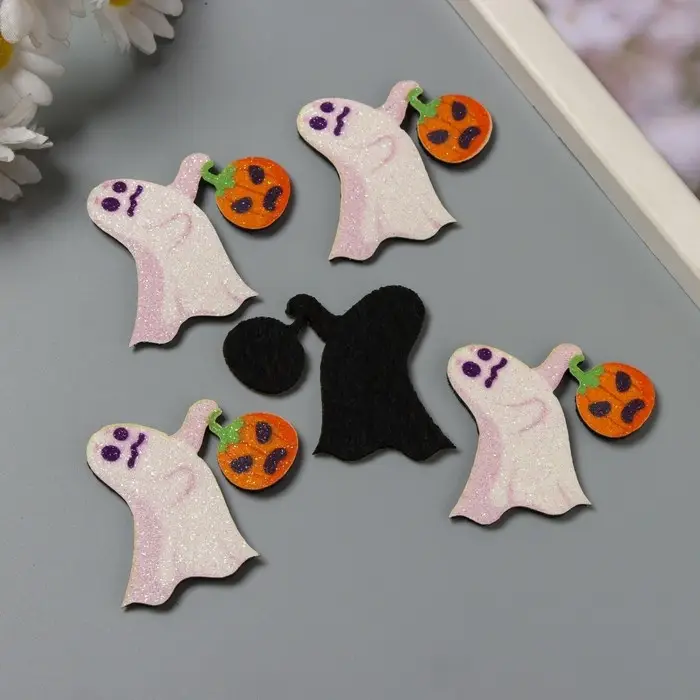 Декор для творчества войлок блеск "Приведение с тыквой" 4,5х5 см
