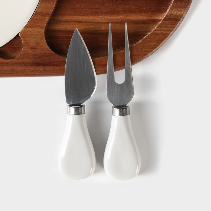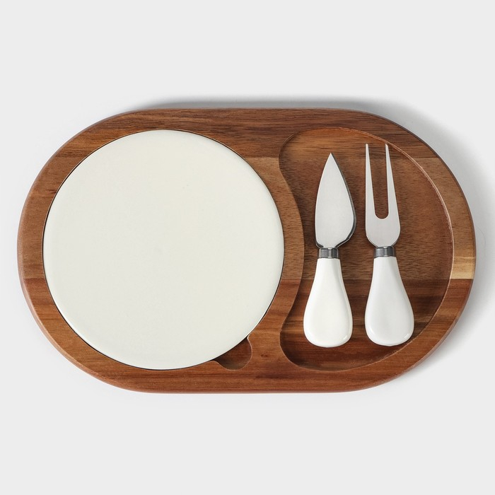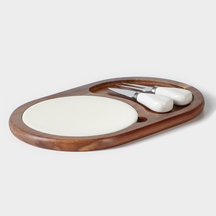 Набор для подачи сыра «Мрамор», 2 ножа, 28×18,5×1,5 см, акация
