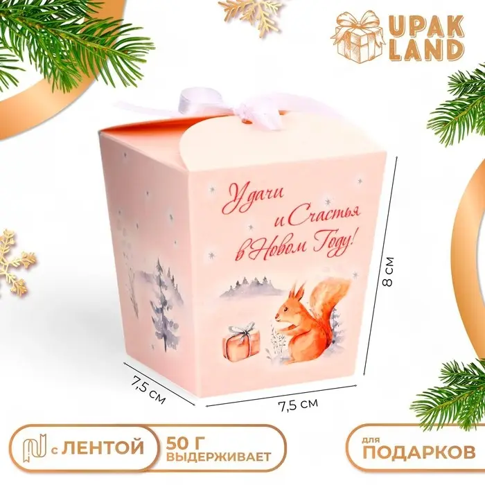 Бонбоньерка, новогодняя подарочная упаковка «Удачи и счастье в Новом Году», 7.5×8×7.5 см