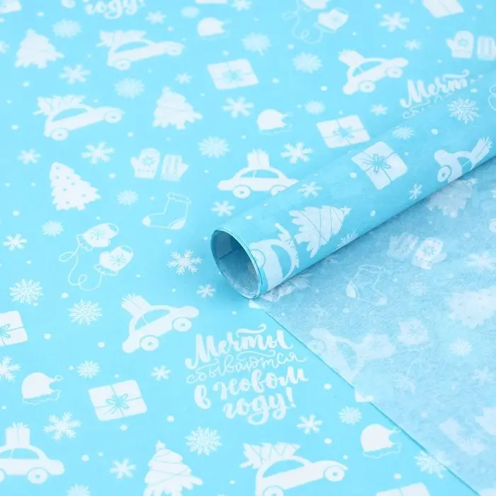 Упаковочная бумага на новый год тишью «Мечты сбываются», 50 х 70 см