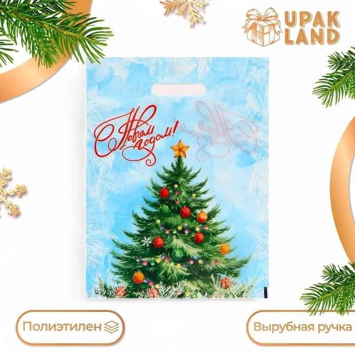 Пакет «Пышная елка с новым годом Пышная елка», полиэтиленовый с вырубной ручкой, 30×40 см