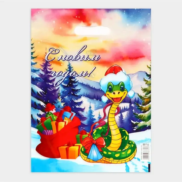 Полиэтиленовый пакет с вырубной ручкой и символикой Змея 2025 — изготовлен из прочного полиэтилена, что обеспечивает его долговечность и надежность в использовании. Вырубная ручка добавляет удобства при использование, делая пакет комфортным даже при значительной нагрузке.