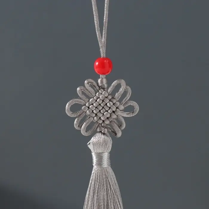 Подвеска текстиль, пластик "Узел счастья и бесконечности" серая 8,5 см