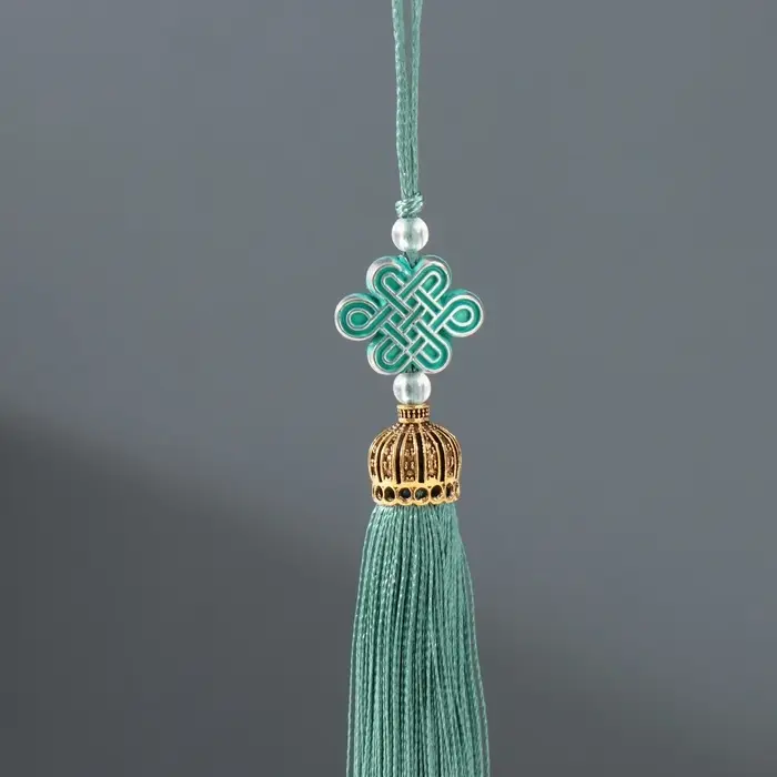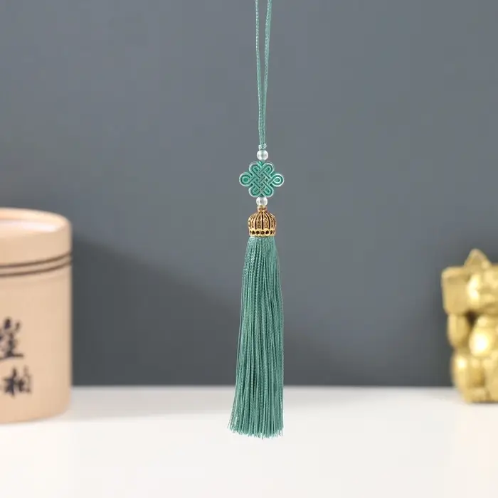 Подвеска текстиль, пластик "Узел счастья и бесконечности" зеленый 0,7х1х9,5 см
