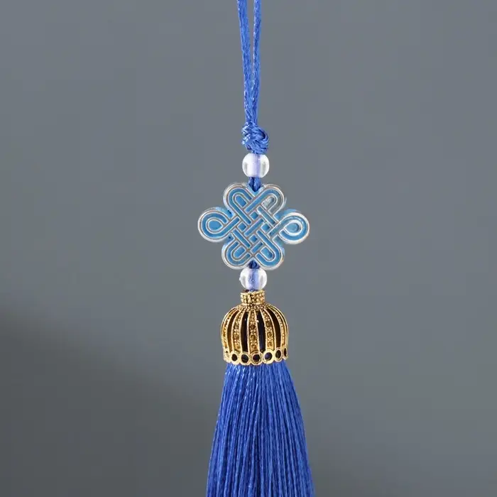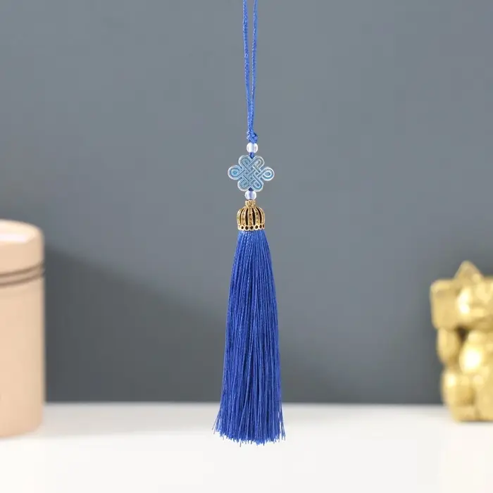 Подвеска текстиль, пластик "Узел счастья и бесконечности" ярко-синяя 0,7х1х9,5 см