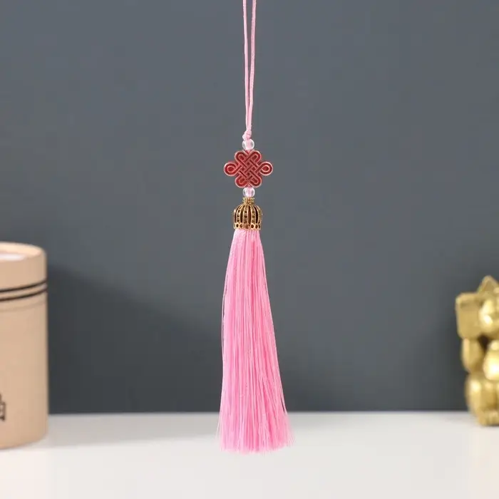 Подвеска текстиль, пластик "Узел счастья и бесконечности" нежно-розовая 0,7х1х9,5 см