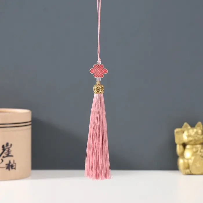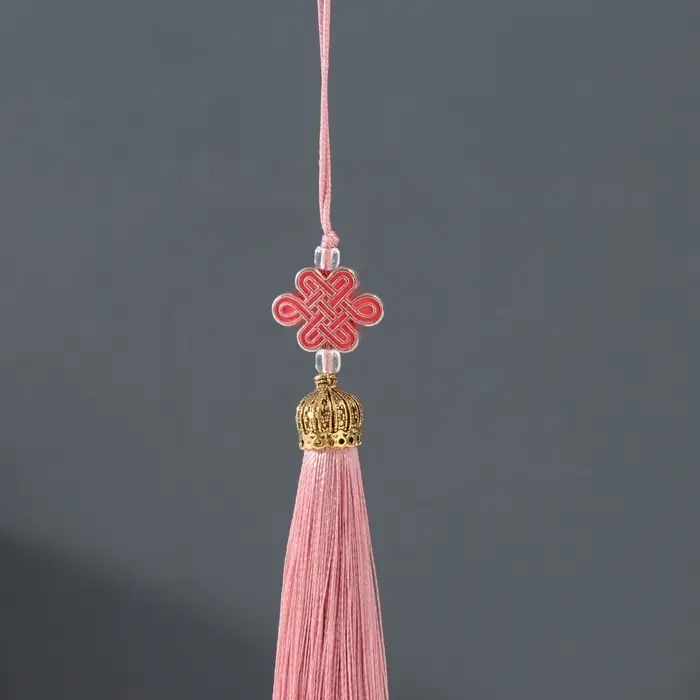 Подвеска текстиль, пластик "Узел счастья и бесконечности" персиковая 0,7х1х9,5 см