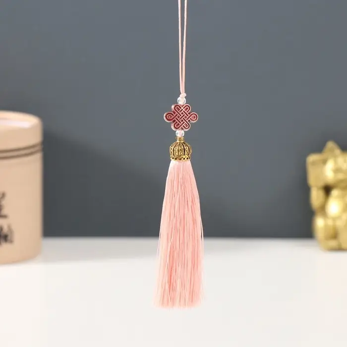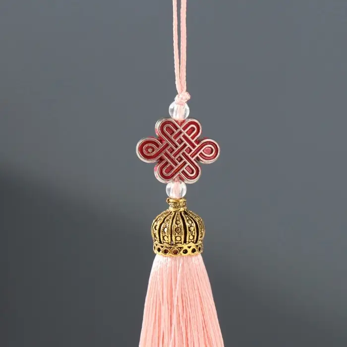 Подвеска текстиль, пластик "Узел счастья и бесконечности" пыльная роза 0,7х1х9,5 см