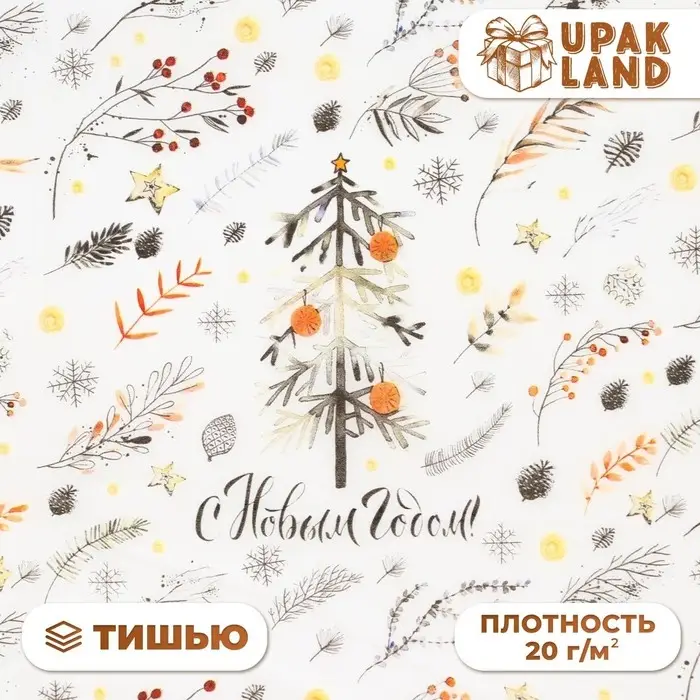Упаковочная бумага тишью "Новогодняя" — это не только красивый, но и экологичный материал. Она изготавливается из натуральных волокон, что делает её безопасной для окружающей среды.