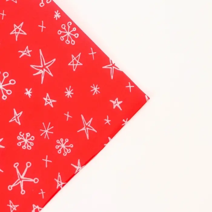 Упаковочная бумага тишью "Новогодняя" размером 50х66 см — это прекрасный выбор для тех, кто хочет создать атмосферу праздника и волшебства. Эта бумага выполнена в ярких новогодних цветах с изображением зимних узоров и снежинок, что делает её идеальным материалом для упаковки подарков к Новому году.