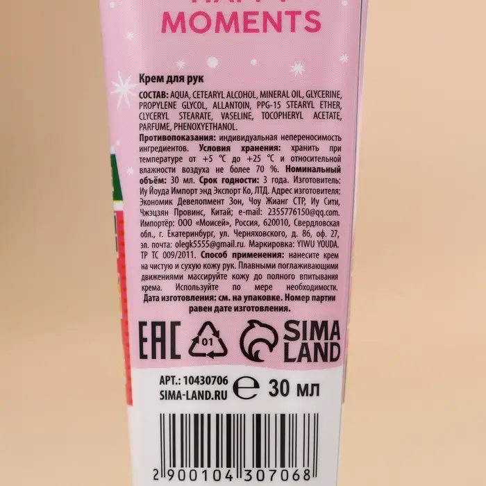 Крем для рук новогодний URAL LAB Merry Christmas, 30 мл, аромат сливочного пломбира