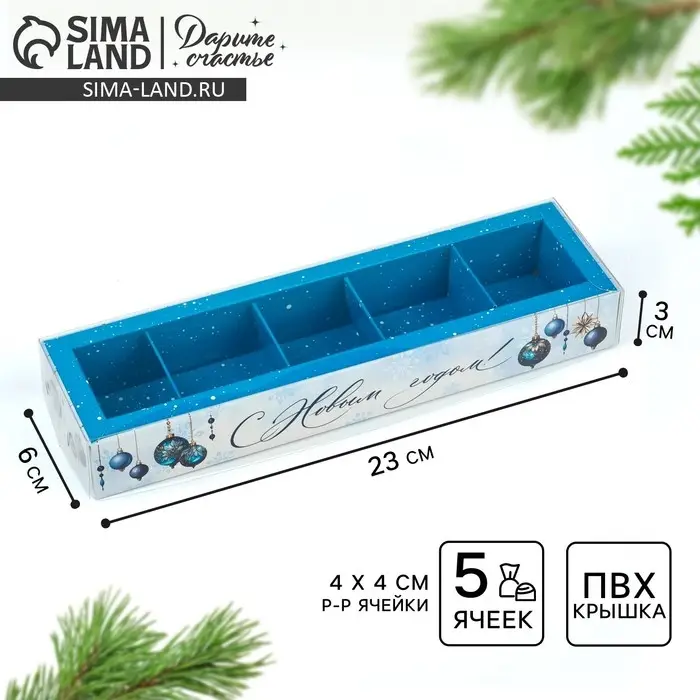 Коробка под 5 конфет с ячейками «Морозная роскошь», 6 х 23 х 3 см