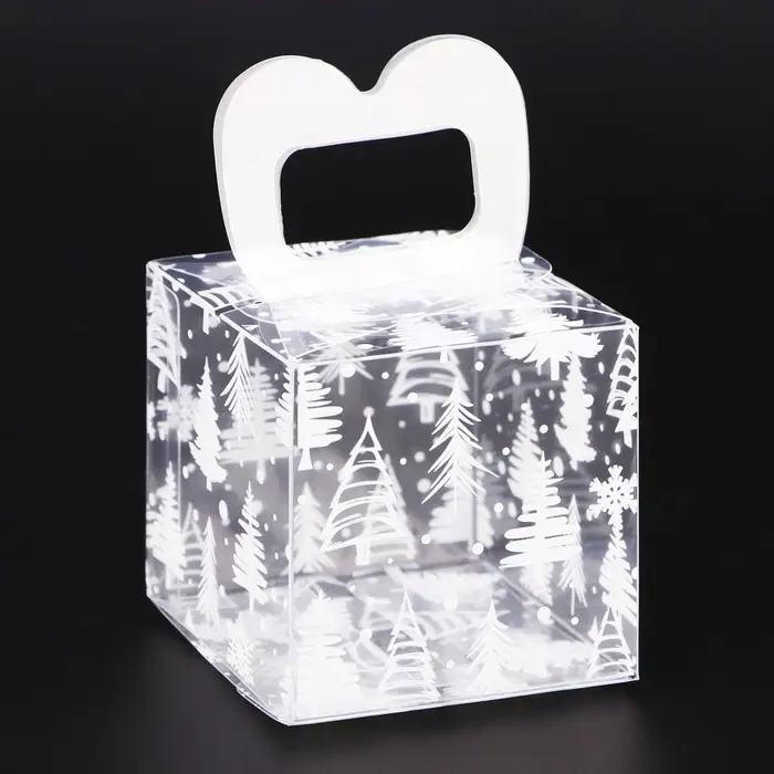 Коробка подарочная новогодняя складная ПВХ «Новый год» 5×5×5 см