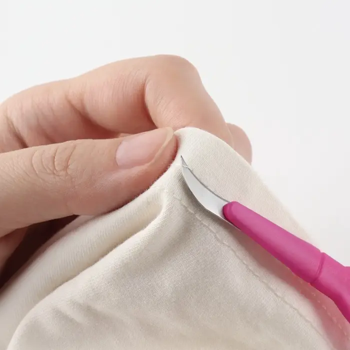 Нож для распарывания швов — это необходимый инструмент для тех, кто занимается шитьём. Он значительно облегчает и ускоряет процесс создания или починки изделия. Инструмент cо скруглённым лезвием позволяет аккуратно вспарывать ручные или машинные швы, срезать пуговицы, избегая повреждения материала.