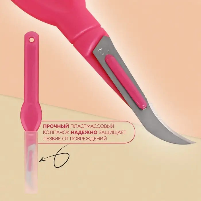 Когда устройство не используется, прочный пластмассовый колпачок надёжно защищает лезвие от повреждений.