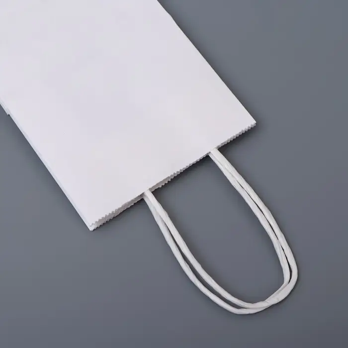 Белый бумажный пакет без печати с круглой ручкой и плотностью 120 г/м² — это стильное и экологичное решение для упаковки и переноски различных товаров. Изготовленный из прочной бумаги с плотностью 120 г/м², этот пакет отличается высокой устойчивостью к разрывам и износу, обеспечивая надежную защиту содержимого.