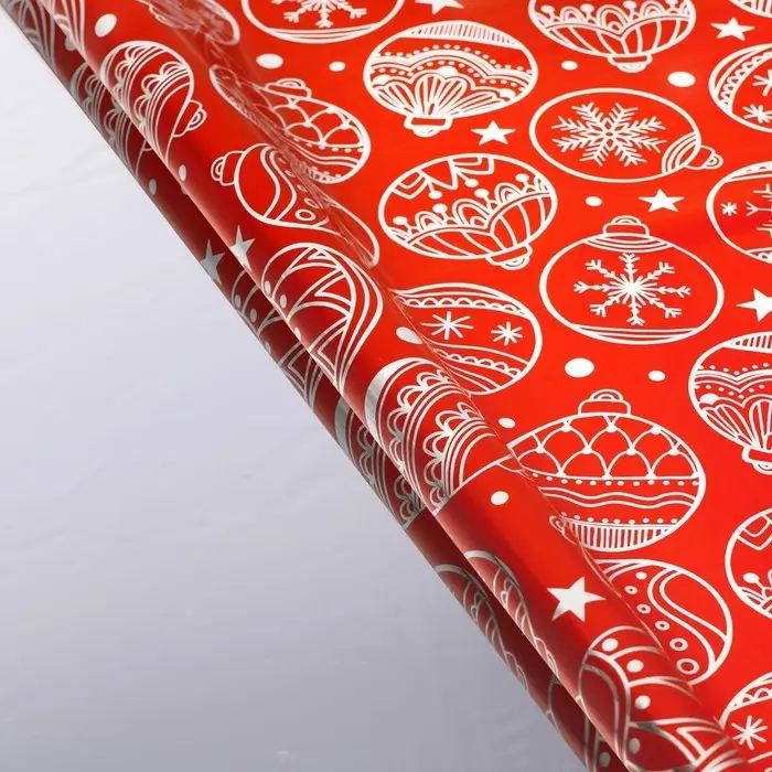 Плёнка упаковочная голография «Новогодние шарики», красная 100×70 см