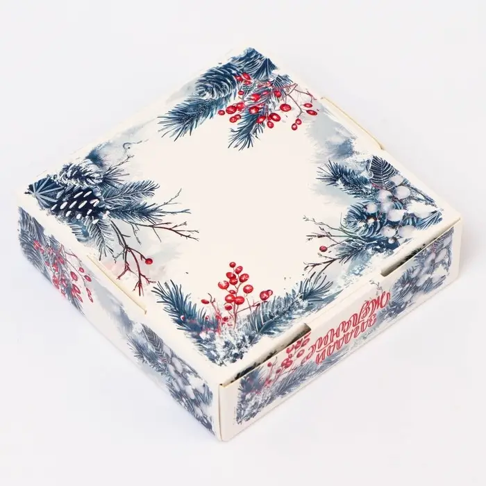 Сборная конструкция упрощает сборку и хранение коробок, а её элегантный внешний вид добавляет праздничного настроения и делает упаковку особенно запоминающейся. Эта коробка станет отличным выбором для упаковки подарков, угощений или сувениров, добавляя изысканности и радости в каждый момент праздника.