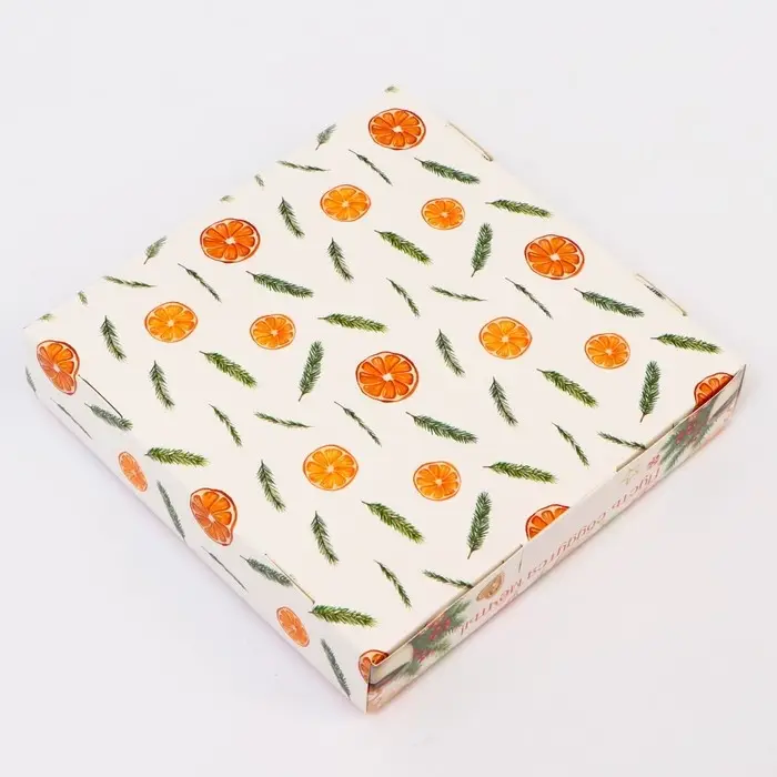 Сборная конструкция упрощает сборку и хранение коробок, а её элегантный внешний вид добавляет праздничного настроения и делает упаковку особенно запоминающейся. Эта коробка станет отличным выбором для упаковки подарков, угощений или сувениров, добавляя изысканности и радости в каждый момент праздника.