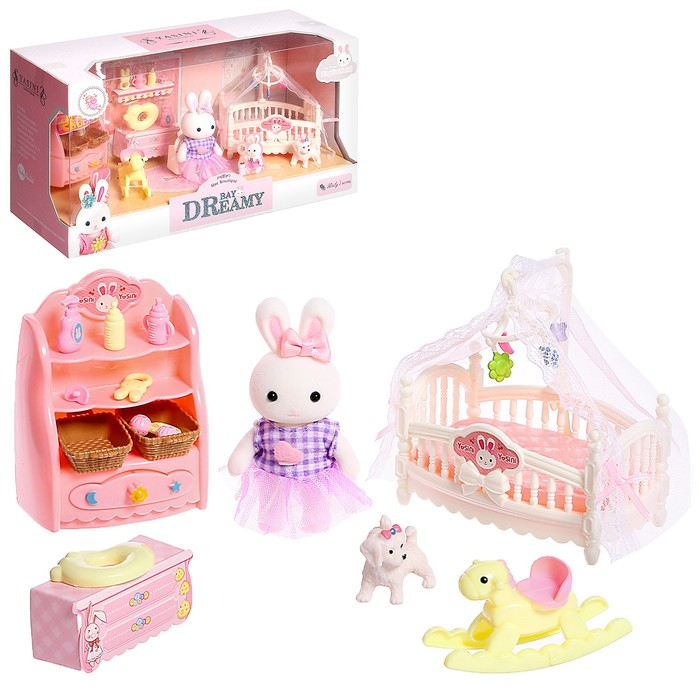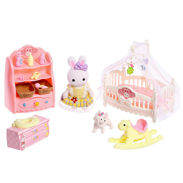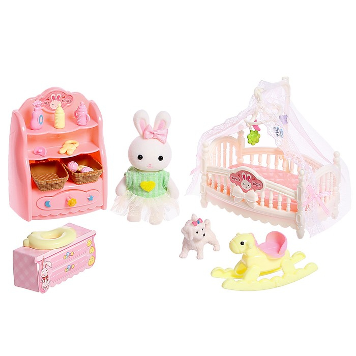 Игровой набор «Зайчик: детская комната» с набором мебели, питомцем и аксессуарами, МИКС