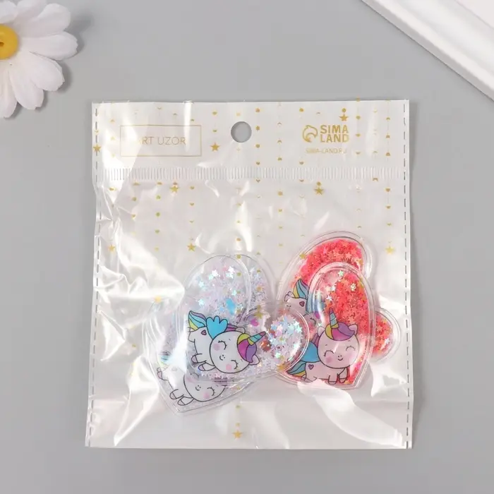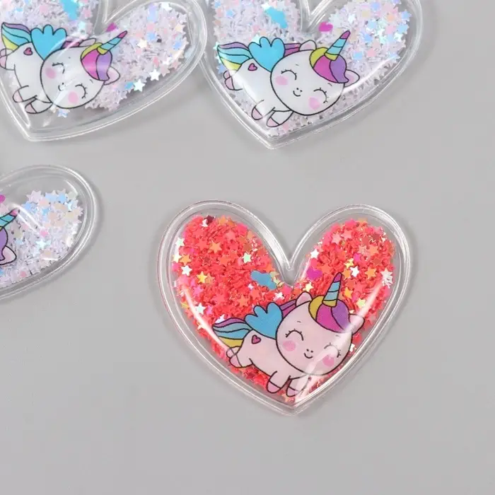 Шейкер для творчества PVC "Сердце с единорогом" с глиттером МИКС 4,5х5 см