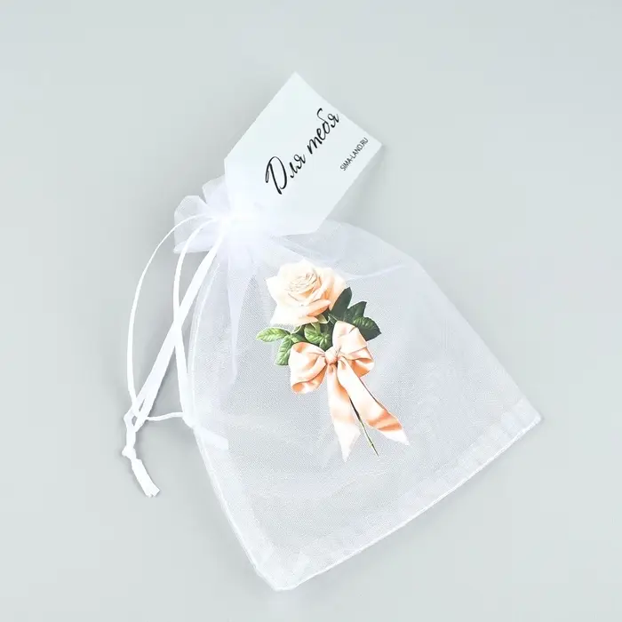 Мешочек подарочный из фатина с термонаклейкой «Роза», 11 х 16 см +/- 1.5 см
