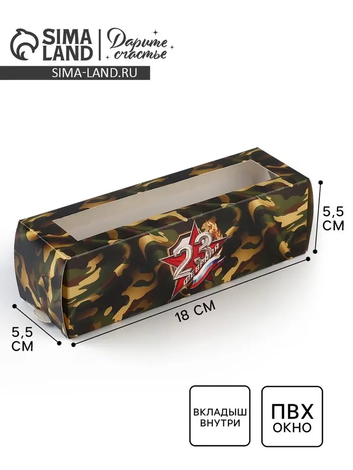 Коробка для макарун «23 февраля», 5.5 х 18 х 5.5 см