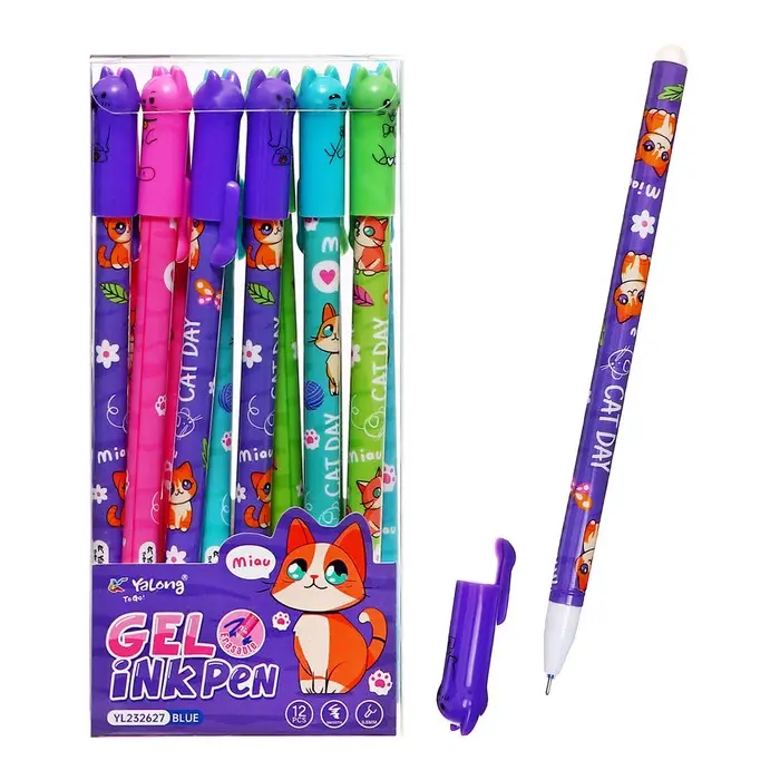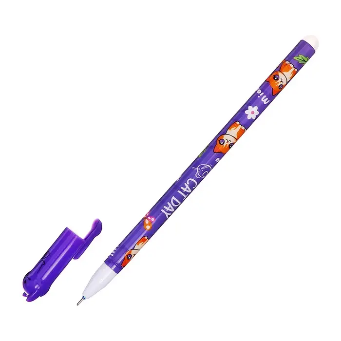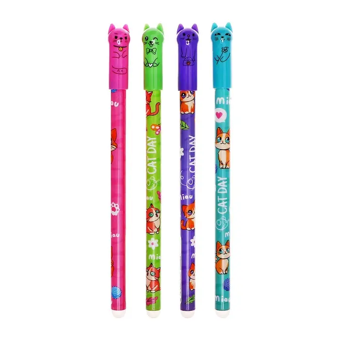 Ручка гелевая СТИРАЕМЫЕ ЧЕРНИЛА, стержень синий, 0.5 мм, корпус Котик МИКС
