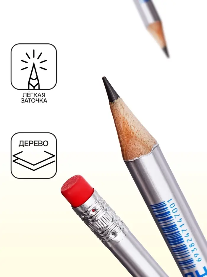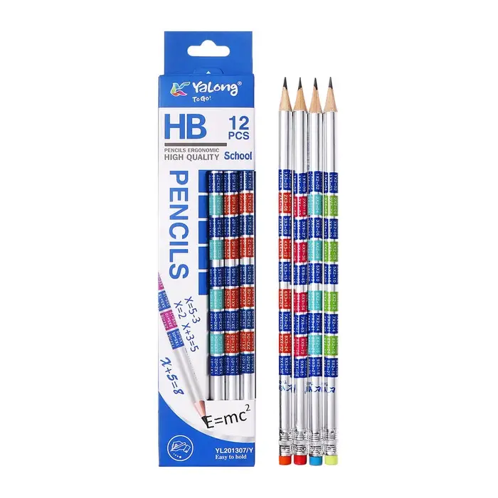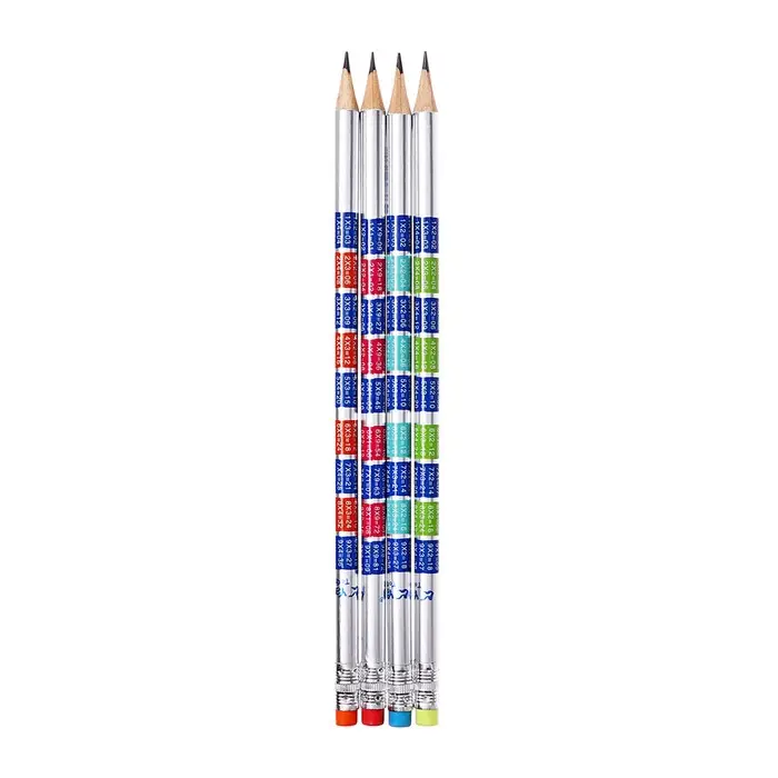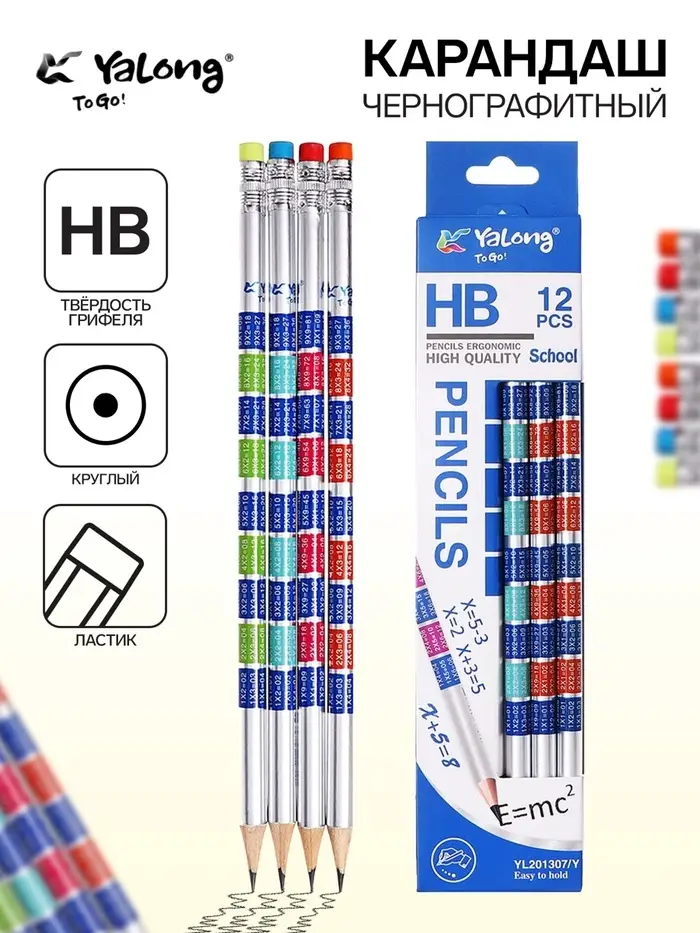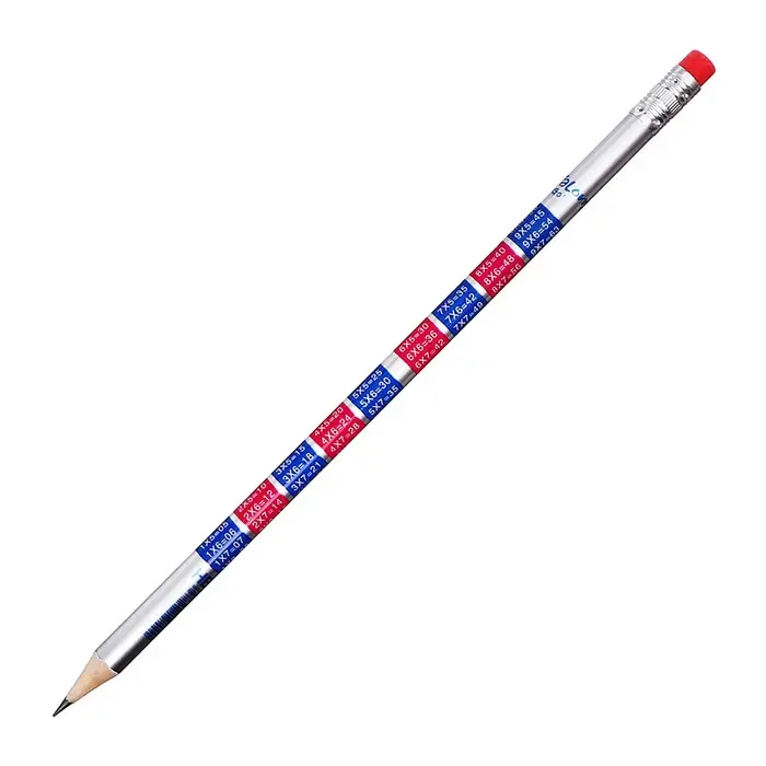 Карандаш чернографитный НВ с ластиком, Таблица умножения, корпус круглый МИКС