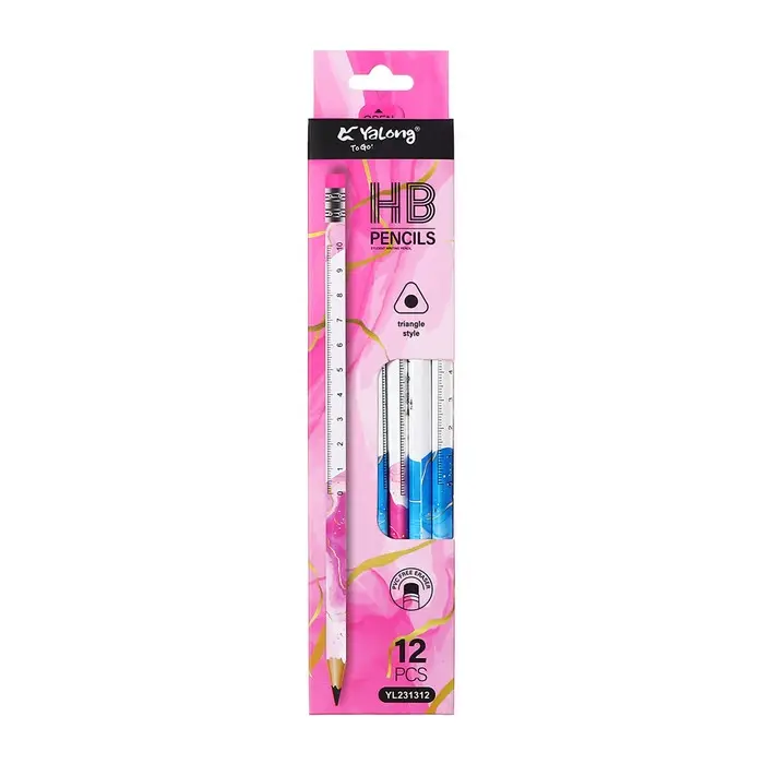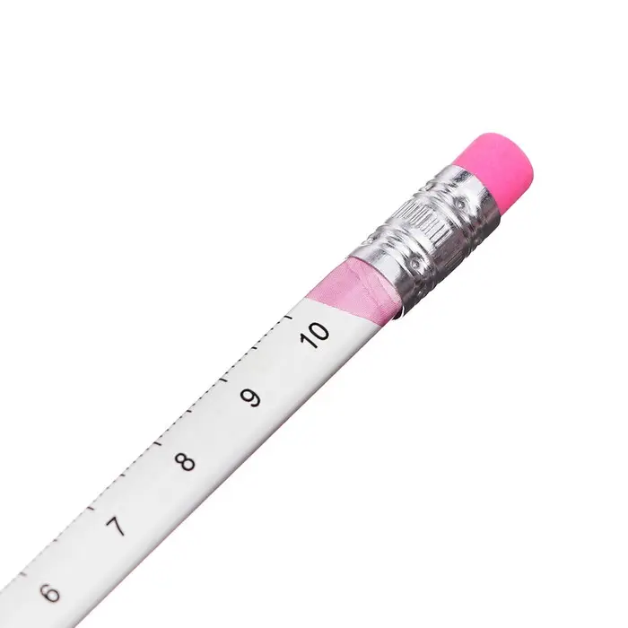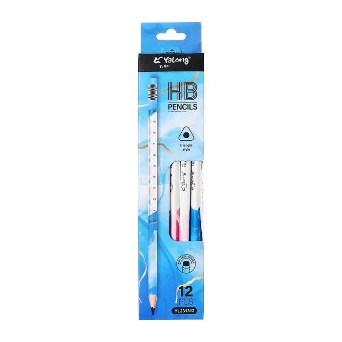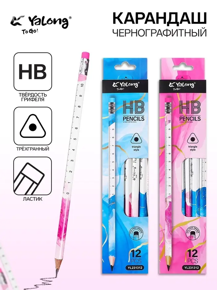 Карандаш чернографитный НВ с ластиком, Линейка, корпус треугольный МИКС